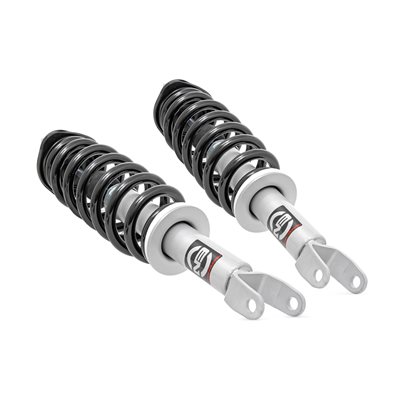 Do you want a great looking truck that still rides like the day you bought it? Our Nitrogen charged, loaded struts add superior ride quality to your truck while maintaining a stock, factory ride height. Each strut includes a pre-loaded coil for lightning-fast installation without the need for complicated strut disassembly.\Rough CountryGÇÖs Performance N3 Struts feature a massive bore and chrome-hardened piston rod with leak-proof piston seal for exceptional durability during off-road use. Each strut is specifically tuned for its intended application and includes a variable dampening system for outstanding handling and control on all road conditions. These Performance N3 Struts offer improved tire contact with the road for increased stability and performance.\These struts are engineered to fit perfectly on each intended application, and feature a pre-installed coil spring for easy installation without the need for strut disassembly. Simply remove your factory strut and replace with this easy, convenient system. Add this upgrade to your lift kit for an increased ride quality that mimics the factory responsiveness and handling of the OE strut. Includes a 3-year Limited Warranty.