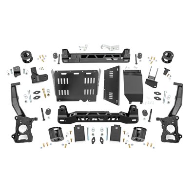 Improved Ground Clearance: Tackle uneven terrain with added underbody space for better off-road capability.Bold, Aggressive Stance: Achieve a commanding look that turns heads on the street or trail.Front-to-Rear Leveling: Eliminates factory rake for a balanced ride height and cleaner profile.Designed for Compatibility: Accommodates the factory locking front differential for full functionality and performance.Enhanced Undercarriage Protection: Includes additional skid plates to safeguard the hydraulic sway bar disconnect from trail hazards and debris.Retains Factory Beadlock Compatibility: Supports factory-capable 17x8.5 +30 offset beadlock wheels for rugged performance.