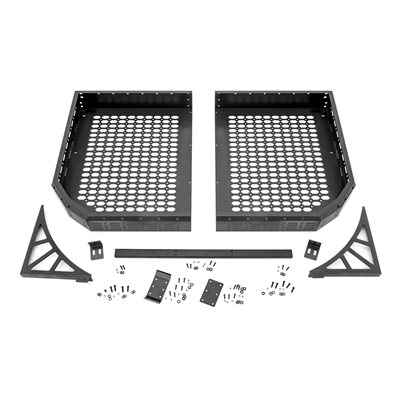 Heavy-Duty Steel Construction: Built tough for long-lasting durability and superior strength.Powder-Coated Finish: Corrosion-resistant coating for added protection against the elements.Easy Installation: Hassle-free setup with no modifications required.Full Dump Bed Functionality: Retains complete use of the dump bed without interference.100% Bolt-On Installation: No drilling or cutting required for a secure, factory-like fit.IP67 Waterproof Design: Sealed to withstand water, dust, and harsh conditions.Versatile Mesh Pattern: Multiple tie-down points for flexible load securing.Optional LED Lights: Includes two pairs of 2-inch square flush mount Cree LED lights (Black Series).