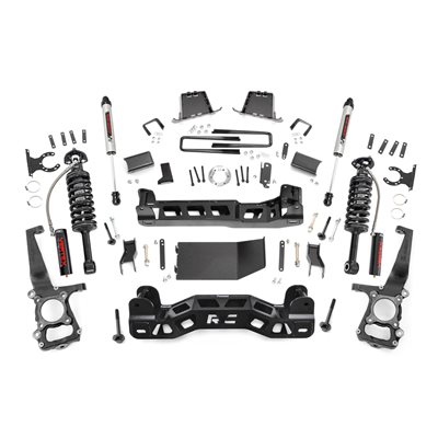 Commanding Lift, Premium Ride: Transform the look and capability of your 2009-2010 Ford F-150 with Rough Country's 6-Inch Lift Kit. Engineered to deliver a bold, leveled stance, this kit not only increases ground clearance for rugged off-road performance but also makes room for larger tires and wheels. Whether you're cruising the highway or tackling backcountry trails, enjoy a smooth, confident ride with enhanced control and presence.Engineered for Strength and Stability: Built for serious performance, this kit features heavy-duty lifted knuckles, durable strut spacers, or your choice of lifted struts, all designed to maintain proper suspension geometry. Differential and sway-bar drop brackets, along with brake line extensions and a driveshaft spacer, ensure everything stays at factory-like angles. Massive 1/4-inch thick front and rear crossmembers offer uncompromised strength, laser-cut with the RC logo for a clean, aggressive look.Advanced Rear Block Design: Rough Country's 4.5-inch fabricated rear blocks are stronger and longer-lasting than traditional cast versions. Specially engineered anti-axle wrap blocks eliminate common lift-related issues while maintaining stock ride comfort. You get durability and drivability in one rugged package.Tailored Ride Performance: This kit includes Rough Country's premium N3 shocks-10-stage variable valving, nitrogen-charged for the perfect fusion of off-road performance and on-road comfort. Want more? It's fully configurable with Rough Country's full lineup of shocks and struts, including the high-performance Vertex reservoir upgrade.Limited Lifetime Replacement Warranty. Rough Country's 6" Lift Kit is backed with a limited lifetime replacement warranty for manufacturer defects. As such, the product is protected from structural and workmanship damage after the date of purchase. With our industry-leading warranty, give yourself peace of mind when using Rough Country's Suspension products!