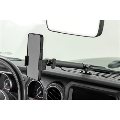 Rough CountryGÇÖs Jeep Wrangler/Gladiator Dash Mount puts an end to those awkward scrambles by keeping your phone right where it belongsGÇösecure, visible, and easy to grab. Designed for easy access and a clean, organized dash, this mount makes it easy to keep your eyes on the road while your device stays put.Easy Access to Your Phone: No more digging around or struggling to find your phone. With this dash mount, your device is always within easy reach, whether youGÇÖre navigating rough terrain or stuck in traffic.Clear the Clutter: Give your Jeep a clean, organized look by keeping your phone off the seats and out of the cup holders. This mount helps you stay tidy and keeps your essentials where they should be.Tough as Nails: Made from 14-gauge powder-coated steel, this mount is built to handle any off-road adventure or daily drive with ease. Durable, rugged, and ready for anything.100% Bolt-On Installation: Easy installation means you can get it done in minutes. Just bolt it on, and youGÇÖre good to go. No drilling, no extra hardware, no worries.From back roads to city streets, the Rough Country Jeep Dash Mount keeps your device locked in place, leaving you free to focus on the drive.
