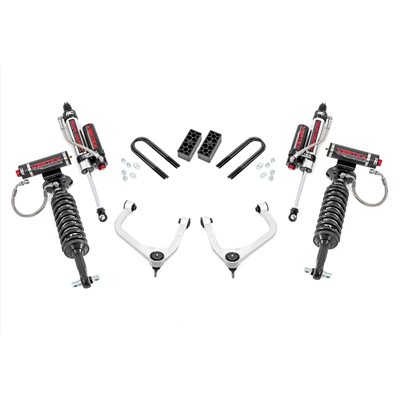 Explore New Heights: GM's fourth-generation Silverado 1500 features an impressive all-new design that's built from the ground up, with aggressive angles and head-turning stylings that fit in beautifully when transformed with Rough Country's 3.5-inch Suspension Lift.Innovative Design and Construction: When changing a vehicle's suspension, the key to preserving ride quality is keeping the geometry of all suspension components as close to their factory angles as possible. Rough Country's 3.5in lift features a set of forged aluminum upper control arms to provide the correct suspension geometry in our most durable control arm to date! This perfect-height lift is a great choice for anyone who wants more than a simple level but doesn't quite want the full height of a 6-inch option. This kit lifts and levels the front of the vehicle with the rear, offering enough increased ground clearance to run up to 33" tires with an improved, aggressive look. We didn't want to limit you to one standard kit. Rough Country's 3.5-inch kit is configurable with all the shock options that we offer. This allows you to choose which shock series you want! Ranging from our nitrogen-charged N3 shocks to our Vertex reservoir shocks the power to choose is in your hands.Installation: Requiring the use of a strut compressor to install, an estimated timeframe of 5-6 hours is recommended to complete this full installation. This full kit can be installed at home and can be completed efficiently and quickly!Limited Lifetime Replacement Warranty: Rough Country's 3.5" Suspension Lift Kit is backed with a limited lifetime replacement warranty towards manufacturer defects. As such, the product is protected from structural and workmanship damage after the date of purchase. With our industry-leading warranty give yourself peace of mind when using Rough Country's Suspension products!