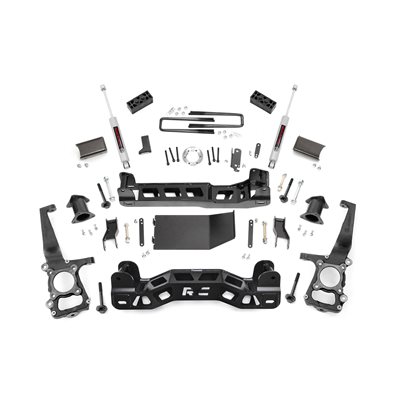 Transform Your Ford F-150 with a Bold New Stance and Unmatched Performance! Rough Country's 4-Inch Suspension Lift gives your truck the aggressive look and off-road capability it deserves. This all-inclusive kit includes everything you need to take your F-150 from the pavement to the trails.Lifted Knuckles & Strut Options: Gain the clearance to run up to 35-inch tires with durable lifted knuckles and your choice of strut spacers, N3 lifted struts, or high-performance M1 monotube struts for ultimate ride control.Maintain Factory Ride Quality: Differential drop brackets, sway-bar drop brackets, brake line brackets, and a driveshaft spacer keep critical components at optimal angles for a factory-like ride, even after lifting.Built for Strength & Style: Heavy-duty 1/4-inch thick plate steel front and rear cross members provide superior durability and feature a laser-cut "RC" logo for a bold, aggressive look.Premium Shock Options for Any Adventure: Choose between Rough Country's high-pressure N3 shocks or upgrade to M1 monotube shocks for next-level performance. The N3 offers 10-stage variable valving and a faster-cooling 54mm shock body for a perfect blend of highway comfort and off-road action. The M1 monotube features a monotube design with internal floating piston technology for unmatched damping and heat dissipation, making it ideal for extreme conditions.