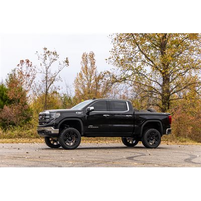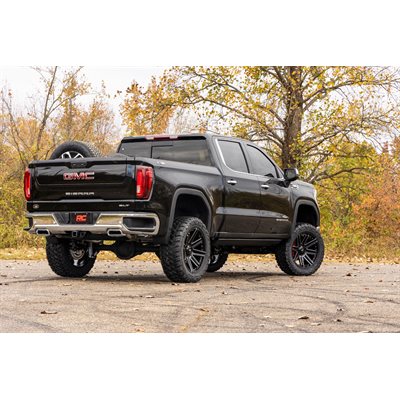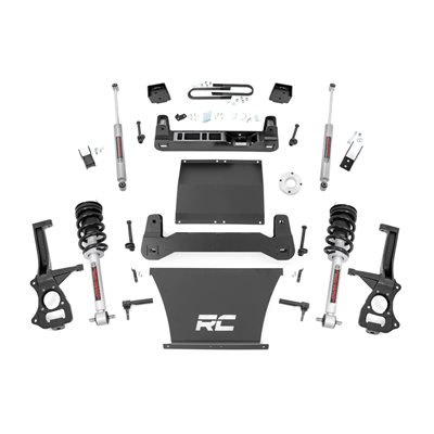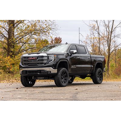 Explore New Heights: GMC's fourth-generation Sierra 1500 features an impressive all-new design that's built from the ground up, with aggressive angles and head-turning stylings that fit in beautifully when transformed with Rough Country's 6-inch Suspension Lift.Innovative Design and Construction: When changing a vehicle's suspension, the key to preserving ride quality is keeping the geometry of all suspension components as close to their factory angles as possible. This suspension kit combines the use of durable steel knuckles and drop cross members to reduce control arm angles and simulate factory angles all while achieving new heights. Featuring a set of upper strut spacers that offer uncompromised strength and rigidity, gaining lift height is no issue. Completing the rear of this suspension kit is a set of rear blocks, shocks, and u-bolts that allow you to retain factory-like geometry. This combined setup provides enough clearance to run 35" tires without additional modifications. We didn't want to limit you to one standard kit. Rough Country's 6-inch kit is configurable with all the shock options that we offer. This allows you to choose which shock series you want! Ranging from our nitrogen-charged N3 shocks to our Vertex reservoir shocks the power to choose is in your hands.Installation: With minor cutting and a strut compressor required to install, an estimated timeframe of 8-10 hours is recommended to complete this full installation. This full kit can be installed at home and can be completed efficiently and quickly!Limited Lifetime Replacement Warranty: Rough Country's 6" Suspension Lift Kit is backed with a limited lifetime replacement warranty towards manufacturer defects. As such, the product is protected from structural and workmanship damage after the date of purchase. With our industry-leading warranty give yourself peace of mind when using Rough Country's Suspension products!