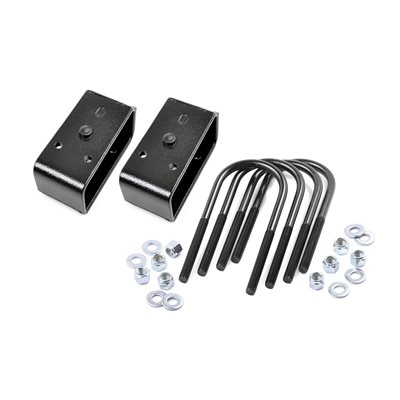 BlocksFabricated steel blocks are stronger and offer a longer lifespan than cast blocks.Tapered to reduce drive shaft angle.Single 9/16-inch pin blocks.2.5-inches wide.Powder coated black.U-boltsThread Size: 5/8-inchInside Width: 3.625-inchInside Length: 16.5-inchStyle: RoundE-coated blackCorrosion resistant
