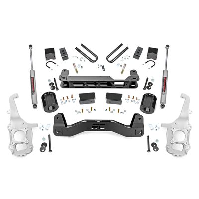 Turn your Ford F-150 into the ultimate road-and-trail champion with Rough Country's 6-Inch Lift Kit. Designed to conquer everything from rugged trails to your daily drive, this kit delivers the perfect stance, unbeatable ground clearance, and the confidence to tackle any challenge. It enhances ride quality while giving your truck the bold, capable look your adventures demand. This isn't just a lift-it's a complete truck upgrade.Serious Ground Clearance: More room for adventure! This lift gives your F-150 the height it needs to clear obstacles on the trail and look commanding on the road.Levels Front and Rear: Say farewell to that factory nose-down look. This kit evens things out, giving your truck a clean, aggressive stance that screams confidence.Precision Engineered Aluminum Knuckles: A standout feature you won't find with any other brand. Engineered to outperform steel, these knuckles are 50% lighter, delivering improved handling and a better ride quality. Outstanding corrosion resistance ensures superior performance and long-lasting durability, making them the ultimate choice for any terrain.Fabricated Rear Blocks: Tougher than cast alternatives, these blocks keep your truck steady and reliable, mile after mile.Installation and Warranty: Transform your F-150 with our all-inclusive 6-inch Lift Kit, featuring durable aluminum knuckles, crossmembers, and all the hardware for a factory-like setup with extra ground clearance. Plus, enjoy peace of mind with Rough Country's limited lifetime warranty, protecting against structural and workmanship defects.This isn't your average lift kit. With premium components and attention to detail, it's designed to handle everything from weekend overlanding to weekday commutes.