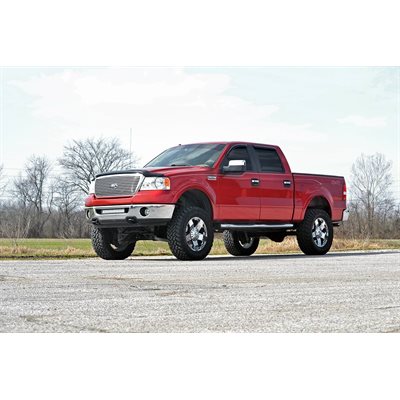 Transform your 2004-2008 Ford F-150 with Rough Country's 6-inch Suspension Lift, giving it an aggressive new look and boosting off-road performance like never before. This all-inclusive kit is engineered to elevate your Ford, providing the perfect balance of strength and style on any trail.Achieve Enhanced Ride Height and Stability: With durable lifted knuckles and strut spacers, youGÇÖll gain the ride height needed to run up to 35-inch tires with proper wheel backspacing, all while maintaining Track Width Consistency for improved handling and stability.Upgrade Your VehicleGÇÖs Performance: This kit includes Differential Drop Brackets, Sway-Bar Drop Brackets, and Brake Line Brackets, ensuring all components stay at optimal angles for a factory-like ride. The 1/4-inch thick plate steel front and rear crossmember enhances your truckGÇÖs strength and gives it a bold, stylish appearance.Enjoy Long-Lasting Durability: Our Stronger Fabricated Rear Blocks offer superior strength and durability compared to traditional cast blocks, while eliminating common axle wrap issues for smoother off-road and on-road performance.Unmatched Off-Road Comfort: Rough CountryGÇÖs premium N3 shocks provide the ideal blend of off-road control and on-road comfort, featuring 10-stage variable high-pressure Nitrogen-charged shocks, an 18mm spring-loaded piston rod, and a 54mm shock body for faster cooling and better performance. For those seeking a more performance-focused upgrade, this kit is also available with Rough CountryGÇÖs M1 Monotube Shocks for superior handling and even greater control.Enjoy Peace of Mind: Backed by Rough CountryGÇÖs Limited Lifetime Replacement Warranty, you can hit the trails with confidence, knowing that your investment is covered for the long haul.