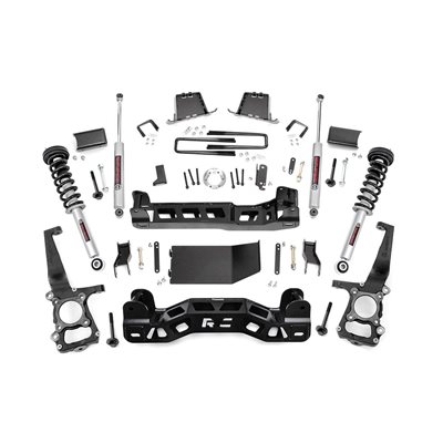 Commanding Lift, Premium Ride: Transform the look and capability of your 2009-2010 Ford F-150 with Rough Country's 6-Inch Lift Kit. Engineered to deliver a bold, leveled stance, this kit not only increases ground clearance for rugged off-road performance but also makes room for larger tires and wheels. Whether you're cruising the highway or tackling backcountry trails, enjoy a smooth, confident ride with enhanced control and presence.Engineered for Strength and Stability: Built for serious performance, this kit features heavy-duty lifted knuckles, durable strut spacers, or your choice of lifted struts, all designed to maintain proper suspension geometry. Differential and sway-bar drop brackets, along with brake line extensions and a driveshaft spacer, ensure everything stays at factory-like angles. Massive 1/4-inch thick front and rear crossmembers offer uncompromised strength, laser-cut with the RC logo for a clean, aggressive look.Advanced Rear Block Design: Rough Country's 4.5-inch fabricated rear blocks are stronger and longer-lasting than traditional cast versions. Specially engineered anti-axle wrap blocks eliminate common lift-related issues while maintaining stock ride comfort. You get durability and drivability in one rugged package.Tailored Ride Performance: This kit includes Rough Country's premium N3 shocks-10-stage variable valving, nitrogen-charged for the perfect fusion of off-road performance and on-road comfort. Want more? It's fully configurable with Rough Country's full lineup of shocks and struts, including the high-performance Vertex reservoir upgrade.Limited Lifetime Replacement Warranty. Rough Country's 6" Lift Kit is backed with a limited lifetime replacement warranty for manufacturer defects. As such, the product is protected from structural and workmanship damage after the date of purchase. With our industry-leading warranty, give yourself peace of mind when using Rough Country's Suspension products!