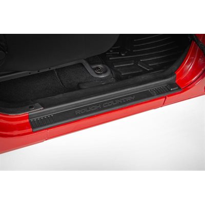 Protect your paint and give your door sills an eye-catching look with Rough CountryGÇÖs Entry Guards. This easy-to-install upgrade helps protect this high-traffic area from scratches, rocks, and other damaging debris.Rough CountryGÇÖs Entry Guards are engineered from an incredibly durable injection molded material to provide years and years of protection. Thanks to the included 3M adhesive strip, installation is a flash. Give your vehicle the finishing touch with this easy upgrade! \_x000D_\