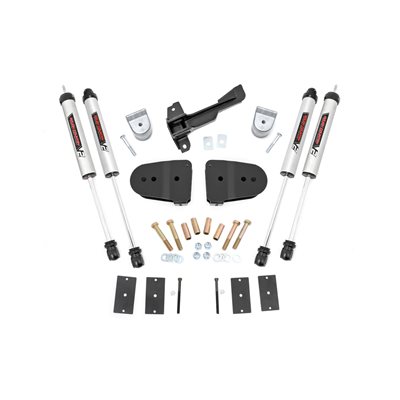 Superior Looks. Give your Ford Super Duty Tremor an impressive upgrade, front to back with Rough Country's 3" Suspension Lift Kit! This easy-to-install lift kit raises the front of your vehicle to be equal height with the rear for a leveled, better-than-stock look that gives an improved ride height and a more aggressive appearance.\Durable Components.This kit features a set of front, lifted coil springs spacers allowing you to gain additional ride height without sacrificing ride quality or performance. A set of radius arm drop brackets as well as a track bar drop bracket is provided to keep everything at optimum angles for a factory-like ride, even after lifting. A set of Rough Country's premium V2 monotube shocks are also included. The V2 Monotube Shock Absorber is more than an upgrade - it's a true performance shock. Each shock features a T6061 brushed aluminum body with black anodized accents giving it a striking visual appearance that also dissipates heat faster than other materials. The internal 46mm high-flow piston offers countless years of durability.\Installation. Requiring minor trimming to install, an estimated timeframe of 3-4 hours is recommended to complete this full installation. This full kit can be installed at home and can be completed efficiently and quickly!\Limited Lifetime Replacement Warranty. Rough Country's 3-inch Suspension Lift Kit is backed with a limited lifetime replacement warranty towards manufacturer defects. As such, the product is protected from structural and workmanship damage after the date of purchase. With our industry-leading warranty give yourself peace of mind when using Rough Country's Suspension products!