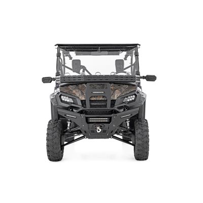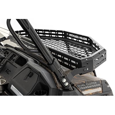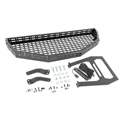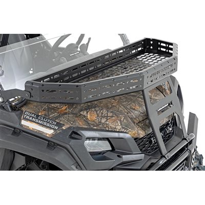Easy Access. Overland adventures require bringing plenty of gear along for the ride. Ensure that your Honda Pioneer has plenty of cargo space by installing Rough Country's Front Cargo Rack Kit. This rock-solid rack design can provide storage to haul all of your gear without sacrificing your cab, or bed space!\Durable Construction. Rough Country's cargo rack kit is constructed from heavy-duty steel and features a laser-cut mesh pattern that provides plenty of mounting points to secure your load. Since adventure doesn't end when the sun goes down, this kit includes a 6" slimline LED light bar. Whether youGÇÖre off the beaten path at sunset or gathering all your gear before dawn, youGÇÖll be glad to have access to additional lighting power to tackle the task at hand. Rough CountryGÇÖs all-weather LED lights feature a durable, IP67 Waterproof, die-cast aluminum housing and include a premium wiring harness with a toggle switch.\Installation. With minor drilling required for installation, an estimated timeframe of 3-4 hours is recommended to complete this full installation. This full kit can be installed at home and can be completed efficiently and quickly!\Limited Lifetime Replacement Warranty. Rough CountryGÇÖs Front Cargo Rack is backed with a limited lifetime replacement warranty towards manufacturer defects. As such, the product is protected from structural and workmanship damage after the date of purchase. With our industry-leading warranty give yourself peace of mind when using Rough Country's Suspension products!