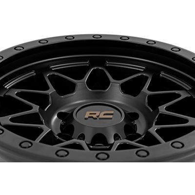 Take your off-road rig to the next level with a wheel designed for adventure and built to perform. The Rough Country 78 Series wheel combines bold aesthetics with rugged functionality, making it the ultimate choice for off-road enthusiasts.Aggressive Semi Gloss Black Finish: Perfectly complements the tough, trail-ready look of your vehicle.Simulated Beadlock Design: Gives your rig that hardcore off-road styling while maintaining easy installation.Unmatched Strength & Lightweight Performance: Precision-engineered from a single piece of premium aluminum for unbeatable durability without adding extra weight.Premium Details: Includes a Rough Country black center cap with standout bronze lettering for a clean, custom touch.Trail-Tested Durability: Backed by a 1-year finish warranty and a Limited Lifetime Structural Warranty to handle whatever the trails throw your way.Whether you're tackling rugged terrain or just want to stand out from the crowd, these wheels are built to deliver. Gear up and conquer the trails in style with Rough Country!