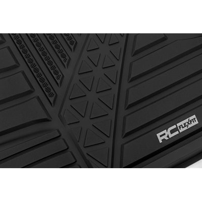 Introducing Flex-Fit floor mats - the ultimate enhancement for your truck's interior and built tough to handle any challenge. Crafted from premium rubber-like material, these mats are as durable as they come, perfectly tailored to fit your truck's unique shape for a seamless finish. Stock floor mats just don't cut it for adventurers. They get trashed by mud, don't hold up to spills, and leave your carpets a mess. Give your ride the all-weather protection it deserves with Rough Country's Flex-Fit Floor Mats, the perfect solution for keeping your vehicle clean and protected.All-Weather Protection: Engineered to fit your vehicle perfectly, these mats provide top-notch defense against snow, mud, sand, saltwater, and more.Spill Saver Lip: Don't sweat the spills! Our mats feature a Spill Saver Lip that prevents liquids from reaching your carpet, so you can enjoy your coffee on the go without worry.Non-Slip, Textured Surface: Stay in control no matter the terrain with our mats' non-slip, textured surface, designed to keep your feet firmly planted while driving.Easy to Clean and Maintain: Cleaning up is a breeze! These mats are detachable and easy to clean, so you can spend less time on maintenance and more time hitting the road.Premium Materials: Constructed from a rubber-like TPE material, these mats are built to withstand extreme temperatures without cracking or warping. They will stay flexible and functional for the long haul.Effortless Installation: Forget wrestling with bulky mats. Flex-Fit Mats slide right into place for a quick and frustration-free installation.Upgrade your truck's defense against the elements with Rough Country's Flex-Fit Floor Mats. They'll keep your carpets looking fresh and give you peace of mind on every adventure.
