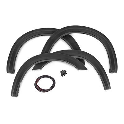 Style and Protection. Unlock the power of real protection and custom style with Rough Country's Sport Style Fender Flares for your fifth-generation Ram 2500/3500! Offering 5 inches of Flare Height, you know your truck is getting the coverage it needs from flying debris and road grime. Not only will these flares safeguard your vehicle, but they will look great too - featuring a bold custom look that stands out and turns heads. Plus, if you want to take your customization game up a notch, these fender flares are easily paintable so they can match your truck in color and style. Get ready to rock this new rugged look GÇô with Rough Country's Sport Style Fender Flares!\Sturdy Construction. These bold and rugged fender flares are designed exclusively for Ram 2500/3500 owners, creating an instant upgrade for your ride. Made from a special Tri-Blend ABS material, these flares have maximum strength and durability, ensuring they will stand up to the toughest conditions that nature has to offer. For added protection, each fender is machine-formed to exact specifications with a high-grade UV protection. Not only do these fender flares look great, but you can trust that they will hold up and continue looking fresh despite the elements.\Installation and Warranty. Featuring an easy and quick installation process, these flares have been designed to provide your truck with the stylish look you've been searching for without any of the hassle. Plus, if you need to bring your truck back to its original specs, the flares can be removed in a flash! But that's not all GÇô each set comes equipped with a three-year limited warranty. Stop dreaming about that showroom-level look and make it happen with Rough Country's Sport Style Fender Flares.