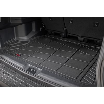 Keeping your ride spotless isn't always easy, especially with the unpredictable weather and accidental spills. Now you can ditch the dirt and keep your ride clean with Rough Country's Sure-Fit Cargo Mats! All-Weather Protection: Our Sure-Fit Cargo Mats are built to conquer any mess, from snow and mud to sand, salt water, and even that mystery puddle you're too afraid to touch. Spilled coffee? Don't sweat it! These mats feature a raised lip design that traps spills before they can reach your carpet. Plus, the textured surface keeps your feet firmly planted (no matter how messy things get).Sure-Fit Design: Made from tough Thermoplastic Rubber, these mats can handle anything you throw at them. They're flexible enough to contour perfectly to your 4Runner's floor, but strong enough to withstand even the most extreme temperatures. And the best part? They're custom-designed for your ride, so you get a perfect fit with extra coverage, whether you're rocking bucket or bench seats.Installation is a Breeze: Simply swap out your old mats and put ours in place. And they're just as easy to remove for cleaning, whether you're hitting them with the hose or giving them a quick vacuum. Made with pride in the USA using high-quality materials, they're built to withstand the test of time. And to show we stand behind our product, we offer a Limited Lifetime Warranty, so you can drive with confidence knowing your investment is protected.With Rough Country's Sure Fit Cargo Mats you get the perfect combination of style, durability, and peace of mind, knowing your vehicle's floors are protected no matter where the road takes you. Life is messy, but your truck doesn't have to be.