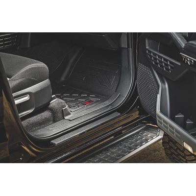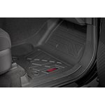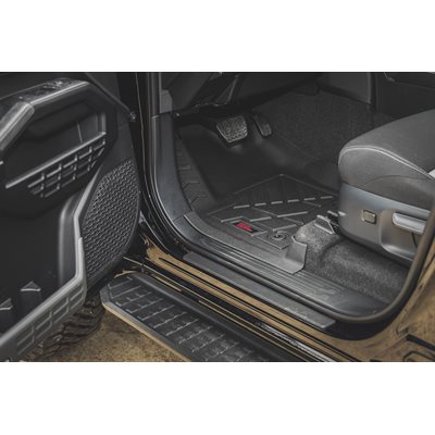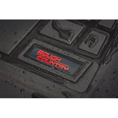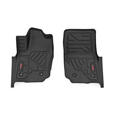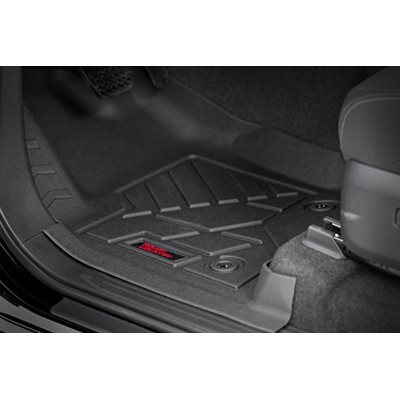 Keeping your ride spotless isn't always easy, especially with the unpredictable weather and accidental spills. Now you can ditch the dirt and keep your ride clean with Rough Country's Sure-Fit Floor Mats! All-Weather Protection: Our Sure-Fit Floor Mats are built to conquer any mess, from snow and mud to sand, salt water, and even that mystery puddle you're too afraid to touch. Spilled coffee? Don't sweat it! These mats feature a raised lip design that traps spills before they can reach your carpet. Plus, the textured surface keeps your feet firmly planted (no matter how messy things get).Sure-Fit Design: Made from tough Thermoplastic Rubber, these mats can handle anything you throw at them. They're flexible enough to contour perfectly to your 4Runner's floor, but strong enough to withstand even the most extreme temperatures. And the best part? They're custom-designed for your ride, so you get a perfect fit with extra coverage, whether you're rocking bucket or bench seats.Installation is a Breeze: Simply swap out your old mats and put ours in place. And they're just as easy to remove for cleaning, whether you're hitting them with the hose or giving them a quick vacuum. Made with pride in the USA using high-quality materials, they're built to withstand the test of time. And to show we stand behind our product, we offer a Limited Lifetime Warranty, so you can drive with confidence knowing your investment is protected.With Rough Country's Sure Fit Floor Mats you get the perfect combination of style, durability, and peace of mind, knowing your vehicle's floors are protected no matter where the road takes you. Life is messy, but your truck doesn't have to be.
