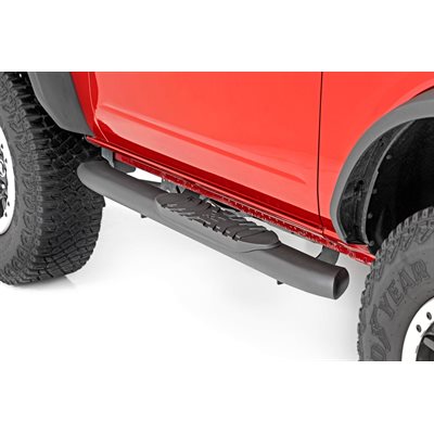 Durable, steel side steps.Classic, OEM design.Wide 4.5-inch stepping area.No-drill installation.30-degree angled end design.Easy installation.Looks great on lifted vehicles.5-year limited warranty.
