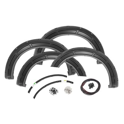 Innovative Design. It's time to stand out from the crowd and rise above your peers. Increase your truck's tire coverage with Rough Country's Defender Flares for the fifth-generation Ford F-250 Super Duty. These aggressively good-looking flares transform your F-250's exterior boasting 3.5 inches of tire coverage. These uniquely designed flares are sure to protect your Super Duty's body from mud or road debris kicked up by the tires.\Durable Construction. With everyday truck drivers in mind, Rough Country designed a Fender Flare that recognizes your expectations for tough tactical design, and your right to demand products with high reliability and outstanding quality. Don't settle for anything less! Rough Country's Defender Flares are designed to handle on or off-road terrain. Rough Country's fender flares are constructed of a smooth ABS UV-protected KoradGäó plastic. This material is lightweight and can endure the elements. The UV treatment process eliminates chalking and helps prevent sun fading.\Limited Lifetime Replacement Warranty. Rough Country's Defender Flares are backed with a limited lifetime replacement warranty towards manufacturer defects. As such, the product is protected from structural and workmanship damage after the date of purchase. With our industry-leading warranty give yourself peace of mind when using Rough Country products!\