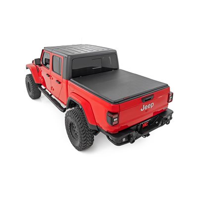 Want to streamline your ride and protect your gear from the elements? Look no further than Rough Country's Tri-Fold Vinyl Tonneau Cover! With its durable construction and easy installation, it's the perfect addition to any truck.Tri-fold Design for Style and Efficiency: This tonneau cover folds up in three sections for easy access to your bed whenever you need it. Need to haul a large item? Simply fold back a panel. When everything's loaded up, unfold it completely for a sleek look that can also improve your gas mileage.Security & Weatherproof Seal: Sitting firmly on the bed railing and featuring a heavy-duty vinyl construction with an all-weather seal, our tri-fold cover keeps your gear safe from prying eyes and the elements.Durable Construction: Crafted with a lightweight 6061 aluminum frame, this cover is tough enough to handle whatever rough terrain you throw at it while keeping your gear safe and sound.Effortless Installation: Our cover comes completely assembled in the box, no loose parts, no tools required. Thanks to our patented quick clamp system, you'll be ready to hit the road in no time.Protect your gear and streamline your ride with Rough Country's Tri-Fold Vinyl Tonneau Cover!