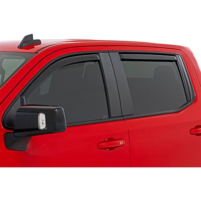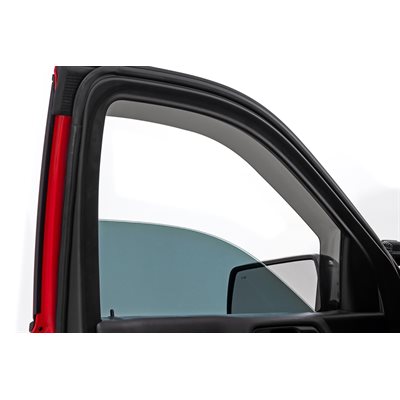 Upgrade your driving comfort with Rough Country's premium in-channel wind deflectors, designed for easy installation and exceptional performance. They fit seamlessly into your vehicle's window channels maintaining a sleek profile while letting you enjoy fresh air in any weather. Say goodbye to noisy wind and turbulence for a quieter cabin on city commutes or road trips. Our deflectors reduce glare and keep your interior dry with windows cracked open. They blend seamlessly with your vehicle's design for a stylish look and are custom-made for a perfect fit and reliable performance, ensuring every drive is comfortable and enjoyable.
