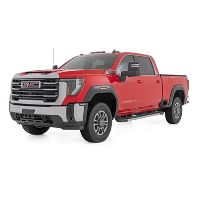Style and Protection: Give your fifth-generation GMC Sierra 2500 HD/3500 HD a bold, aggressive look while keeping it protected with Rough Country's Sport Style Fender Flares! With 6.5 inches of flare height and 1 inch of extra coverage, these flares provide superior defense against road debris, mud, and grime. The sleek flat black finish delivers a rugged off-road aesthetic, but if you want a custom touch, they're easily paintable to match your truck's color and style. Whether you're hitting the trails or cruising the streets, these fender flares will make sure your Sierra stands out from the crowd.Durable and Built to Last: Designed for maximum strength and longevity, these fender flares are constructed from Tri-Blend ABS material, making them tough enough to withstand the harshest conditions. Each flare is UV-protected to prevent fading, ensuring they maintain their fresh, aggressive look over time. Plus, their precision-engineered fitment means they hug your truck's body perfectly, giving you the protection and style you need without compromise.Easy Installation and Warranty: Get the upgraded look you want without the hassle! These flares offer a quick and easy bolt-on installation with no drilling required, making the process smooth and stress-free. Want to return your truck to stock? The flares can be removed just as easily! Plus, every set is backed by Rough Country's 3-year limited warranty, so you can drive with confidence knowing your investment is protected. Stop waiting-upgrade your Sierra today with Rough Country's Sport Style Fender Flares!