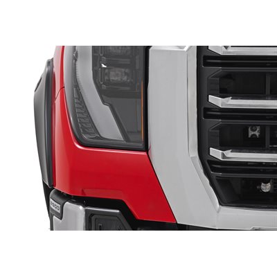 Style and Protection: Give your fifth-generation GMC Sierra 2500 HD/3500 HD a bold, aggressive look while keeping it protected with Rough Country's Sport Style Fender Flares! With 6.5 inches of flare height and 1 inch of extra coverage, these flares provide superior defense against road debris, mud, and grime. The sleek flat black finish delivers a rugged off-road aesthetic, but if you want a custom touch, they're easily paintable to match your truck's color and style. Whether you're hitting the trails or cruising the streets, these fender flares will make sure your Sierra stands out from the crowd.Durable and Built to Last: Designed for maximum strength and longevity, these fender flares are constructed from Tri-Blend ABS material, making them tough enough to withstand the harshest conditions. Each flare is UV-protected to prevent fading, ensuring they maintain their fresh, aggressive look over time. Plus, their precision-engineered fitment means they hug your truck's body perfectly, giving you the protection and style you need without compromise.Easy Installation and Warranty: Get the upgraded look you want without the hassle! These flares offer a quick and easy bolt-on installation with no drilling required, making the process smooth and stress-free. Want to return your truck to stock? The flares can be removed just as easily! Plus, every set is backed by Rough Country's 3-year limited warranty, so you can drive with confidence knowing your investment is protected. Stop waiting-upgrade your Sierra today with Rough Country's Sport Style Fender Flares!