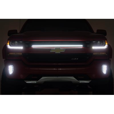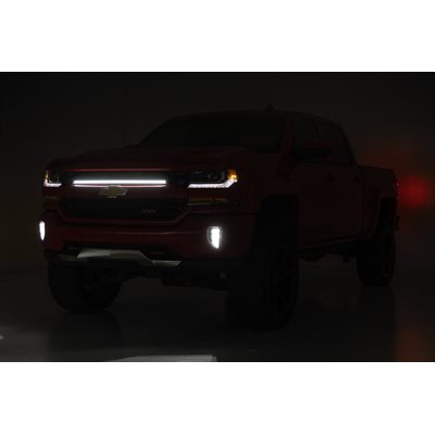 Tired of being caught in the dark? Our Grille Mount LED Light Kit is the answer to your nighttime needs. Designed specifically for the third/fourth generation Chevy Silverado 1500, this kit brings the brightness you need to tackle those moonless nights and foggy mornings with confidence.Blazing Brightness: This kit packs 162 LED chips that provide a powerful beam to light up even the darkest trails, ensuring you see every rock, rut, and mud puddle in your way.Durable Materials: Our lights, featuring a tough-as-nails aluminum housing and IP68 waterproof rating, are ready to withstand Mother Nature's wrath.Precision Lighting: The nylon reflector and silicone lens surface work together to deliver a focused, clear light. Say goodbye to scattered beams and hello to a sharp, consistent light that shows you exactly where you're headed.Long-Lasting Power: Running on 12V power and 16 watts, these lights are built to last over 50,000 hours. That's a whole lot of night drives, camping trips, and late-night work sessions.Complete Kit: No need to hunt down extra parts GÇô this kit includes everything you need: mounting brackets, hardware, and harness. Just mount it, wire it up, and hit the road.The Grille Mount LED Light Kit for your Chevy Silverado 1500 is the upgrade you didn't know you needed but won't be able to live without. Whether you're navigating rugged terrain or setting up camp after dark, this kit has you covered. Light up the night with Rough Country's Grille Mount LED Light Kit!