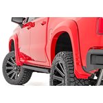 Rough Country's SF1 Fender Flares help you get the tough-looking finishing touch that your build deserves with a one-of-a-kind design. These flares complement the truck's body lines offering a clean look that will turn heads. The SF1 flare design gives the perfect amount of additional tire coverage for an oversized wheel and tire package and feature an integrated rear "mud catcher" to help reduce tire sling down the truck side. They are easy to install on your Chevy Silverado 1500, with excellent fitment right out of the box and includes all necessary hardware. The construction of these flares is from a durable ABS material that is both UV resistant for an uncoated install or paint-ready for a custom color match look.\Not only will you get the utility you need from these flares, but you'll also have a unique and aggressive look for your truck.GÇ» Whether you're looking for functionality or an accessory to tie your lift, wheels and tires together, Rough Country's SF1 fender flares deliver on all fronts.