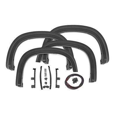 Style and Protection. Unlock the power of real protection and custom style with Rough Country's Sport Style Fender Flares for your fourth-generation Chevy Silverado 1500! Offering 5.75 inches of Flare Height, you know your truck is getting the coverage it needs from flying debris and road grime. Not only will these flares safeguard your vehicle, but they will look great too - featuring a bold custom look that stands out and turns heads. Plus, if you want to take your customization game up a notch, these fender flares are easily paintable so they can match your truck in color and style. Get ready to rock this new rugged look GÇô with Rough Country's Chevy Sport Style Fender Flares!\Sturdy Construction. These bold and rugged fender flares are designed exclusively for Silverado 1500 owners, creating an instant upgrade for your ride. Made from a special Tri-Blend ABS material, these flares have maximum strength and durability, ensuring they will stand up to the toughest conditions that nature has to offer. For added protection, each fender is machine-formed to exact specifications with a high-grade UV protection. Not only do these fender flares look great, but you can trust that they will hold up and continue looking fresh despite the elements.\Installation and Warranty. Featuring an easy and quick installation process, these flares have been designed to provide your truck with the stylish look you've been searching for without any of the hassle. Plus, if you need to bring your truck back to its original specs, the flares can be removed in a flash! But that's not all GÇô each set comes equipped with a three-year limited warranty. Stop dreaming about that showroom-level look and make it happen with Rough Country's Chevy Sport Style Fender Flares.