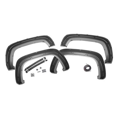Style and Protection: Unlock the power of real protection and custom style with Rough Country's Sport Style Fender Flares for your Chevy 2500 HD/3500 HD! Offering 6 inches of Flare Height, you know your truck is getting the coverage it needs from flying debris and road grime. Not only will these flares safeguard your vehicle, but they will look great too - featuring a bold custom look that stands out and turns heads. Plus, if you want to take your customization game up a notch, these fender flares are easily paintable so they can match your truck in color and style. Get ready to rock this new rugged look GÇô with Rough Country's Sport Style Fender Flares!Sturdy Construction: These bold and rugged fender flares are designed exclusively for fourth-generation 2500 HD/3500 HD owners, creating an instant upgrade for your ride. Made from a special Tri-Blend ABS material, these flares have maximum strength and durability, ensuring they will stand up to the toughest conditions that nature has to offer. For added protection, each fender is machine-formed to exact specifications with a high-grade UV protection. Not only do these fender flares look great, but you can trust that they will hold up and continue looking fresh despite the elements.Installation and Warranty: Featuring an easy and quick installation process, these flares have been designed to provide your truck with the stylish look you've been searching for without any of the hassle. Plus, if you need to bring your truck back to its original specs, the flares can be removed in a flash! But that's not all GÇô each set comes equipped with a three-year limited warranty. Stop dreaming about that showroom-level look and make it happen with Rough Country's Sport Style Fender Flares.