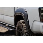 Innovative Design. It's time to stand out from the crowd and rise above your peers. Increase your truck's tire coverage with Rough Country's Defender Flares for the third-generation Toyota Tacoma. These aggressively good-looking flares transform your Tacoma's exterior boasting 2-inches of tire coverage. These uniquely designed flares are sure to protect your Tacoma's body from mud or road debris kicked up by the tires.\Durable Construction. With everyday truck drivers in mind, Rough Country designed a Fender Flare that recognizes your expectations for tough tactical design, and your right to demand products with high reliability and outstanding quality. Don't settle for anything less! Rough Country's Defender Flares are designed to handle on or off-road terrain. Rough Country's fender flares are constructed of a smooth ABS UV-protected KoradGäó plastic. This material is lightweight and can endure the elements. The UV treatment process eliminates chalking and helps prevent sun fading.\Limited Lifetime Replacement Warranty. Rough Country's Defender Flares are backed with a limited lifetime replacement warranty towards manufacturer defects. As such, the product is protected from structural and workmanship damage after the date of purchase. With our industry-leading warranty give yourself peace of mind when using Rough Country products!\