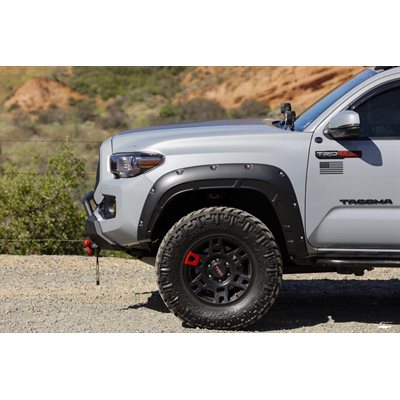 Innovative Design. It's time to stand out from the crowd and rise above your peers. Increase your truck's tire coverage with Rough Country's Defender Flares for the third-generation Toyota Tacoma. These aggressively good-looking flares transform your Tacoma's exterior boasting 2-inches of tire coverage. These uniquely designed flares are sure to protect your Tacoma's body from mud or road debris kicked up by the tires.\Durable Construction. With everyday truck drivers in mind, Rough Country designed a Fender Flare that recognizes your expectations for tough tactical design, and your right to demand products with high reliability and outstanding quality. Don't settle for anything less! Rough Country's Defender Flares are designed to handle on or off-road terrain. Rough Country's fender flares are constructed of a smooth ABS UV-protected KoradGäó plastic. This material is lightweight and can endure the elements. The UV treatment process eliminates chalking and helps prevent sun fading.\Limited Lifetime Replacement Warranty. Rough Country's Defender Flares are backed with a limited lifetime replacement warranty towards manufacturer defects. As such, the product is protected from structural and workmanship damage after the date of purchase. With our industry-leading warranty give yourself peace of mind when using Rough Country products!\