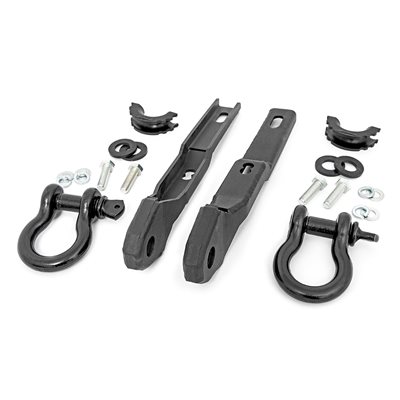 • Designed to accommodate shackles with 7/8in size threaded pins Only works with aftermarket bumpers that are designed to retain factory tow hooks