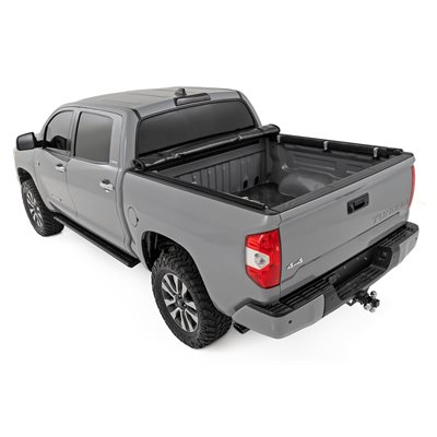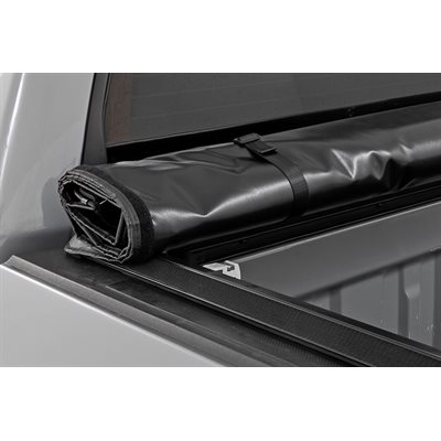 All-Weather Bed Protection: Rough Country's Soft Roll-Up Bed Cover delivers reliable protection against the elements while preserving full bed functionality. Constructed from high-quality, marine-grade vinyl with a sleek matte black finish, this durable cover features heavy-duty hook-and-loop side seals and tight front and rear barriers to shield your cargo from rain, dust, and debris.Streamlined Low-Profile Design: Sitting just 1-1/8" above the bed, this top-mount cover blends seamlessly with your truck's lines for a clean, stylish look. The corrosion-resistant, black powder-coated aluminum frame offers long-lasting strength without sacrificing style or aerodynamics.Fast and Easy Bed Access: The roll-up design and spring-latch closure system make opening and closing the cover a breeze. A single cable pull lets you release the latch quickly, giving you fast access to your full bed whenever you need it. Whether you're hauling gear or unloading tools, convenience comes standard.Effortless Installation: No drilling required - this cover installs in just 20 minutes using the included bracket system and tools. It mounts securely to your factory bed rails for a snug, hassle-free fit you can count on.Protected by a 5-Year Warranty: Rough Country backs this Soft Roll-Up Bed Cover with a 5-Year Replacement Warranty, protecting against structural and workmanship defects so you can hit the road with total confidence.