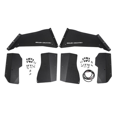 3-piece construction for total protectionKeeps mud and debris out of engine bayEasy installationCorrosion-resistant black powder coatImproves the look of inner-fender areaIncludes rear driver and passenger side pieces