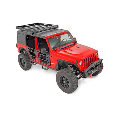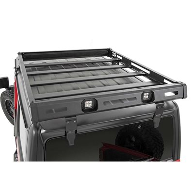 Heavy-Duty Load Capacity: Supports up to 225 lbs dynamic and 450 lbs static evenly distributed.Overall Dimensions: 70" (L) x 54" (W) x 6" (H) for full roof coverage.Interior Cargo Space: 61" (L) x 50.75" (W) x 3" (H) of usable storage area.Rugged All-Steel Construction: Built to withstand off-road conditions and harsh weather.Easy Bolt-On Installation: 100% bolt-on design requires no cutting or drilling.Freedom Panel Compatible: Allows removal of Freedom Top panels on 4-door models.Secure Cargo Platform: Includes four durable slats for reliable gear storage.LED Light Upgrade Available: Option to add 50" and dual 2" Black Series dual-row LED lights.High-Output LED Lighting: Optional LED kit produces 27,840 lumens for superior trail visibility.