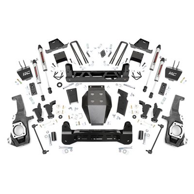 Ultimate Upgrade. Give your GM 2500HD/3500HD an unbeatable stance and better ride quality with Rough Country's 7-inch Lift Kit with Torsion Drop. This kit is a unique offering of suspension lifts, delivering the desired torsion drop look and ride you want while still offering unmatched ground clearance. The Torsion Drop brackets are designed to ensure that your vehicle's track width is not widened and allows you to maintain the factory feel of handling corners and turns. So take your everyday ride and make it one of a kind with our 7-inch Lift Kit with Torsion Drop!Premium Construction. This 7-Inch rugged lift kit is made of heavy-duty laser-cut steel components, powder-coated for a long-lasting finish. It includes replacement knuckles, 1/4" thick steel cross members for the front and rear, fabricated lift blocks, and 1/4" thick Torsion Drop Bar Brackets. You also get the option to configure with multiple shock options that we offer. This allows you to choose the shock series that best fits your needs! Ranging from our nitrogen-charged N3 shocks, to V2 monotube shocks, or our high-performance Vertex adjustable shocks, the power to choose is in your hands. This setup will give you a level stance and the ride height you need to run those larger tires with ease.Installation and Warranty. This kit is packed with all hardware needed for installation and includes full sway bar links, a durable, thick Skid Plate, and brake line relocation brackets. Although some minor cutting and drilling are required, there is no drilling or modifying of the differential, and no drivetrain or exhaust modifications are required. Rough Country's products are backed with a limited lifetime replacement warranty. This means that you have the security of knowing that Rough Country's products will work as they should, even after years of use.