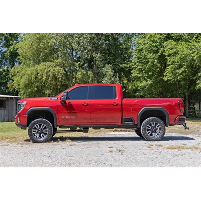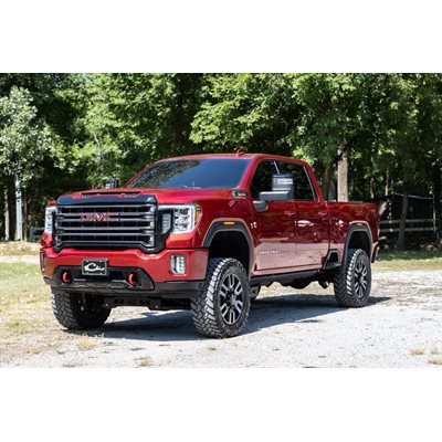 Ultimate Upgrade. Give your GM 2500HD/3500HD an unbeatable stance and better ride quality with Rough Country's 5-inch Lift Kit with Torsion Drop. This kit is a unique offering of suspension lifts, delivering the desired torsion drop look and ride you want while still offering unmatched ground clearance. The Torsion Drop brackets are designed to ensure that your vehicle's track width is not widened and allows you to maintain the factory feel of handling corners and turns. So take your everyday ride and make it one of a kind with our 5-inch Lift Kit with Torsion Drop!Premium Construction. This 5-Inch rugged lift kit is made of heavy-duty laser-cut steel components, powder-coated for a long-lasting finish. It includes replacement knuckles, 1/4" thick steel cross members for the front and rear, fabricated lift blocks, and 1/4" thick Torsion Drop Bar Brackets. You also get the option to configure with multiple shock options that we offer. This allows you to choose the shock series that best fits your needs! Ranging from our nitrogen-charged N3 shocks, to V2 monotube shocks, or our high-performance Vertex adjustable shocks, the power to choose is in your hands. This setup will give you a level stance and the ride height you need to run those larger tires with ease.Installation and Warranty. This kit is packed with all hardware needed for installation and includes full sway bar links, a durable, thick Skid Plate, and brake line relocation brackets. Although some minor cutting and drilling are required, there is no drilling or modifying of the differential, and no drivetrain or exhaust modifications are required. Rough Country's products are backed with a limited lifetime replacement warranty. This means that you have the security of knowing that Rough Country's products will work as they should, even after years of use.