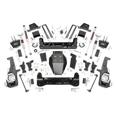 Ultimate Upgrade. Give your GM 2500HD/3500HD an unbeatable stance and better ride quality with Rough Country's 7-inch Lift Kit with Torsion Drop. This kit is a unique offering of suspension lifts, delivering the desired torsion drop look and ride you want while still offering unmatched ground clearance. The Torsion Drop brackets are designed to ensure that your vehicle's track width is not widened and allows you to maintain the factory feel of handling corners and turns. So take your everyday ride and make it one of a kind with our 7-inch Lift Kit with Torsion Drop!Premium Construction. This 7-Inch rugged lift kit is made of heavy-duty laser-cut steel components, powder-coated for a long-lasting finish. It includes replacement knuckles, 1/4" thick steel cross members for the front and rear, fabricated lift blocks, and 1/4" thick Torsion Drop Bar Brackets. You also get the option to configure with multiple shock options that we offer. This allows you to choose the shock series that best fits your needs! Ranging from our nitrogen-charged N3 shocks, to V2 monotube shocks, or our high-performance Vertex adjustable shocks, the power to choose is in your hands. This setup will give you a level stance and the ride height you need to run those larger tires with ease.Installation and Warranty. This kit is packed with all hardware needed for installation and includes full sway bar links, a durable, thick Skid Plate, and brake line relocation brackets. Although some minor cutting and drilling are required, there is no drilling or modifying of the differential, and no drivetrain or exhaust modifications are required. Rough Country's products are backed with a limited lifetime replacement warranty. This means that you have the security of knowing that Rough Country's products will work as they should, even after years of use.