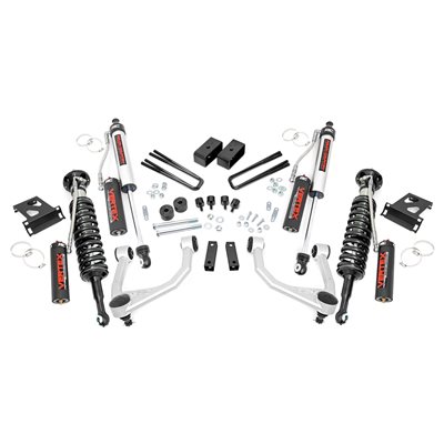 Easy Bolt-On installationLoaded Struts for easy assemblyNo Cutting or Drilling required!Includes New tubular upper control armsControl arms keep ball joints at optimum angles for less wear and tearControl arms include durable rubber bushings for enhanced durabilityIncreased ground clearanceLevels the front and rear of the truckLifetime Replacement Warranty*