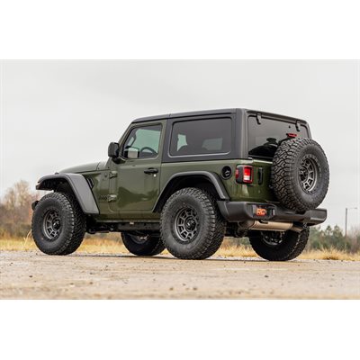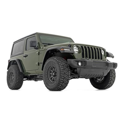 When it comes to your two-door Jeep JL Rubicon, we know you need a lift that won't let you down. Our 3.5 Inch Lift Kit delivers legendary off-road prowess and smooth on-road handling.Increased Ground Clearance: Get ready to conquer those rocky trails and rough terrains like a boss! Our lift kit gives your Jeep Wrangler Rubicon the extra inches it needs to clear obstacles with ease.Front-to-Rear Leveling: Tired of that nose-down stance? Ditch the unbalanced Jeep life with our leveling kit. We bring symmetry to your ride, lifting the front to match the rear, giving you a smooth and steady journey.Tuned Coil Springs for Superior Performance: Your Jeep's handling and ride quality matter, and we get that. Our coil springs come dialed in with OEM spring rates, delivering top-notch handling and a plush ride. Our linear coil rate springs take it up a notch, ensuring impeccable handling and stability, even when the terrain gets wild.Additional Tire Clearance: Who doesn't want bigger, beefier tires? Our lift kit makes room for larger tires (up to 35 inches), giving your Jeep a more aggressive look that will turn heads on and off the road!Heavy-Duty Track Bar: Our included track bar is an absolute beast, constructed from forged solid steel for unparalleled strength and durability. With its massive 1.25-inch outside diameter and rugged OEM-style rubber bushings, it's built to handle anything the off-road throws its way.Durable CV Driveshaft: The factory shaft does not have adequate clearance once lifted and will cause damage to the Rzeppa joint if the driveshaft spins while the suspension is fully flexed or articulated. Rough Country's extended Front CV Driveshaft eliminates this issue allowing you to flex your suspension with more peace of mind!Easy Installation: We know you'd rather be off-roading than in the garage all day. That's why our lift kit is designed for easy installation, so you can hit the trails in no time.