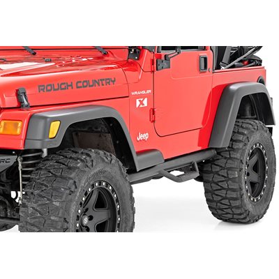 Easy bolt-on installation.Gain an additional 2.25in of tire coverage.Made of UV Treated Thermoplastic.Offers the same appearance as stock flares.