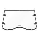Width: 52.64" Height: 29.45"Durable, polycarbonate construction.Inner and outer hard coating to resist scratching.Contoured design.Rubber seal for a precise fit.Works with factory or aftermarket roofs.Easy to install.