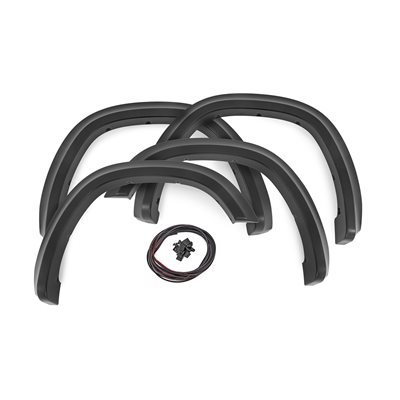 Style and Protection. Unlock the power of real protection and custom style with Rough Country's Sport Style Fender Flares for your fifth-generation Ram 1500! Offering 5 inches of Flare Height, you know your truck is getting the coverage it needs from flying debris and road grime. Not only will these flares safeguard your vehicle, but they will look great too - featuring a bold custom look that stands out and turns heads. Plus, if you want to take your customization game up a notch, these fender flares are easily paintable so they can match your truck in color and style. Get ready to rock this new rugged look GÇô with Rough Country's Sport Style Fender Flares!\Sturdy Construction. These bold and rugged fender flares are designed exclusively for Ram 1500 owners, creating an instant upgrade for your ride. Made from a special Tri-Blend ABS material, these flares have maximum strength and durability, ensuring they will stand up to the toughest conditions that nature has to offer. For added protection, each fender is machine-formed to exact specifications with a high-grade UV protection. Not only do these fender flares look great, but you can trust that they will hold up and continue looking fresh despite the elements.\Installation and Warranty. Featuring an easy and quick installation process, these flares have been designed to provide your truck with the stylish look you've been searching for without any of the hassle. Plus, if you need to bring your truck back to its original specs, the flares can be removed in a flash! But that's not all GÇô each set comes equipped with a three-year limited warranty. Stop dreaming about that showroom-level look and make it happen with Rough Country's Sport Style Fender Flares.