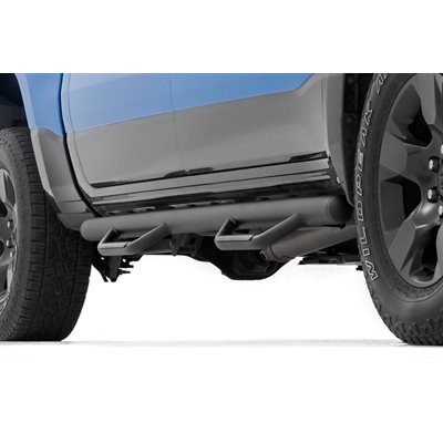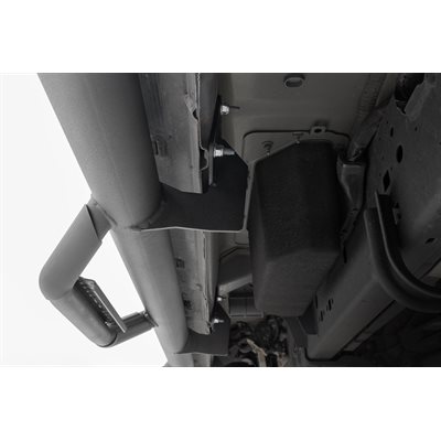 Sleek Drop Step Design: Features a functional drop step design, offering easy access to your vehicle while maintaining a stylish look.Extended Main Bar for Full Coverage: The main bar stretches the entire length of the cab, ensuring comprehensive protection and support.Direct Bolt-On Brackets: Brackets are designed to bolt directly to the nerf bar for a secure and stable fit.High and Tight Positioning for a Cleaner Look: The bar is strategically positioned to sit high and tight, providing a sleek, finished appearance.Superior Protection Against Road Debris: Shield your vehicle from flying road debris and environmental wear with this added protective feature.Corrosion-Resistant .084 Wall Tubing: Built from heavy-duty .084 wall tubing that resists corrosion, ensuring durability in all weather conditions.Conceals Exposed Frame for a Neater Look: Effectively hide unsightly exposed frame parts under your vehicle for a cleaner, more polished appearance.Limited Lifetime Warranty: Backed by Rough Country's lifetime warranty against material and workmanship failures - including welds, brackets, and structural components - for the original purchaser. The finish is covered by a 1-year warranty.