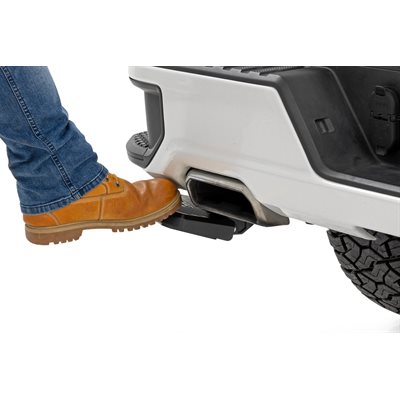 Tired of climbing up like you're scaling a wall just to reach your gear? The Rough Country Manual Bed Step is your answer for quick and easy access. With a simple tap of your foot, this step drops 5", giving you that extra boost to reach what you need without breaking a sweat. Whether you're tossing in tools or loading up camping gear, the Rough Country Bed Step has your back (and your knees).5-Inch Drop: Say goodbye to awkward stretches and hops; this step gives you a 5-inch drop, so reaching into your truck bed feels like second nature.Foot-Push Deployment: No need to fumble around with handles or levers. Just give it a gentle nudge with your foot, and the step is ready to roll, supporting up to 330 lbs!Wide and Secure: With a 6" wide, non-slip surface, the die-cast aluminum board keeps your footing solid'even when your boots are muddy or it's pouring rain.Durable Die-Cast Aluminum: Built tough with lightweight yet super-strong die-cast aluminum, this step will withstand the roughest terrain and hardest working days.Easy Bolt-On Installation: No need to bust out the big tools or fumble with complicated installations. This step bolts right on for a quick and easy setup.Give your truck the upgrade it deserves with the Rough Country Manual Bed Step. Invest in a step that's built to last, and make accessing your truck bed easier than ever.