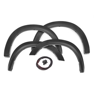 Style and Protection. Unlock the power of real protection and custom style with Rough Country's Sport Style Fender Flares for your fourth-generation Ram 1500! Offering 5 inches of Flare Height, you know your truck is getting the coverage it needs from flying debris and road grime. Not only will these flares safeguard your vehicle, but they will look great too - featuring a bold custom look that stands out and turns heads. Plus, if you want to take your customization game up a notch, these fender flares are easily paintable so they can match your truck in color and style. Get ready to rock this new rugged look GÇô with Rough Country's Sport Style Fender Flares!\Sturdy Construction. These bold and rugged fender flares are designed exclusively for Ram 1500 owners, creating an instant upgrade for your ride. Made from a special Tri-Blend ABS material, these flares have maximum strength and durability, ensuring they will stand up to the toughest conditions that nature has to offer. For added protection, each fender is machine-formed to exact specifications with a high-grade UV protection. Not only do these fender flares look great, but you can trust that they will hold up and continue looking fresh despite the elements.\Installation and Warranty. Featuring an easy and quick installation process, these flares have been designed to provide your truck with the stylish look you've been searching for without any of the hassle. Plus, if you need to bring your truck back to its original specs, the flares can be removed in a flash! But that's not all GÇô each set comes equipped with a three-year limited warranty. Stop dreaming about that showroom-level look and make it happen with Rough Country's Sport Style Fender Flares.