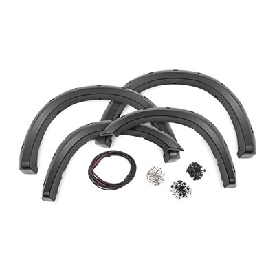 Add aggressive good looks quickly and easily with Rough Country's Fender Flares. Nothing compliments a new lift, wheels, and tires like a set of stylish, mean-looking fender flares. Rough Country's Fender Flares are designed with a simulated riveted look. These fender accessories bolt-on quickly and easily in a few secure mounting points, making installation a cinch. No cutting or drilling is required to install, and these flares can be easily removed and return your truck to stock! These UV treated fender flares ship in flat-black or can easily be painted to match your vehicle, and are designed to withstand the sun, rain and other elements of nature. Rough Country Fender Flares are guaranteed to be free of defects for 3 years!