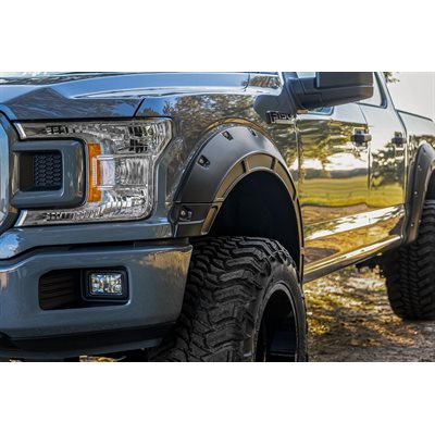 Innovative Design. It's time to stand out from the crowd and rise above your peers. Increase your truck's tire coverage with Rough Country's Defender Flares for the thirteenth-generation Ford F-150. These aggressively good-looking flares transform your F-150's exterior boasting 2-inches of tire coverage. These uniquely designed flares are sure to protect your F-150's body from mud or road debris kicked up by the tires.\Durable Construction. With everyday truck drivers in mind, Rough Country designed a Fender Flare that recognizes your expectations for tough tactical design, and your right to demand products with high reliability and outstanding quality. Don't settle for anything less! Rough Country's Defender Flares are designed to handle on or off-road terrain. Rough Country's fender flares are constructed of a smooth ABS UV-protected KoradGäó plastic. This material is lightweight and can endure the elements. The UV treatment process eliminates chalking and helps prevent sun fading.\Limited Lifetime Replacement Warranty. Rough Country's Defender Flares are backed with a limited lifetime replacement warranty towards manufacturer defects. As such, the product is protected from structural and workmanship damage after the date of purchase. With our industry-leading warranty give yourself peace of mind when using Rough Country products!\