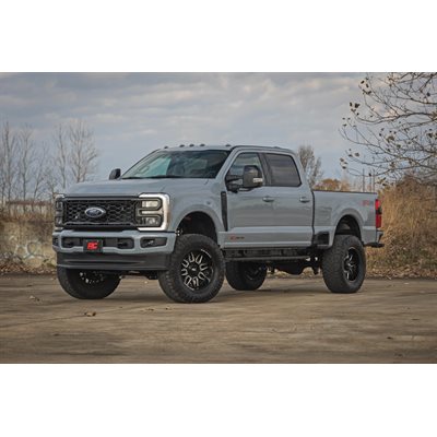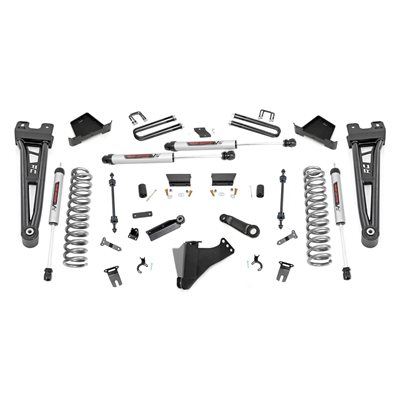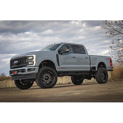 Level Up Your Super Duty Stance: Give your fifth-generation Ford F-250/F-350 Super Duty the aggressive lift it deserves with Rough Country's 4.5" Suspension Lift Kit. This premium kit eliminates factory rake, delivers front-to-rear leveling, and increases ground clearance, resulting in a bold, commanding presence on and off the road.Strength Meets Precision with Tubular Radius Arms: Ditch the weak factory setup. This kit features high-clearance tubular radius arms with a beefy 2-inch outer diameter design engineered for superior strength, durability, and optimized suspension geometry. These arms bolt directly into factory mounts for a straightforward, secure installation without the need for drop brackets.Engineered for Ride Quality: Lifted front coil springs raise your stance while maintaining a smooth, controlled ride. Designed to preserve factory-like angles, this system includes sway bar drop brackets and a track bar relocation bracket to ensure proper geometry and predictable handling across any terrain.Durability Where It Counts: Heavy-duty fabricated rear blocks outperform standard cast blocks with enhanced strength and longevity. Anti-axle wrap blocks help eliminate unwanted movement under torque, preserving your factory ride quality even under load.Customize Your Ride Performance: Dial in your preferred ride feel with configurable shock options. Go with Rough Country's nitrogen-charged N3 shocks for balanced on-road comfort and trail performance, or upgrade to V2 Monotube shocks for premium responsiveness and heat dissipation during demanding off-road conditions.Quick, Bolt-On Installation: No cutting, no drilling, just a simple bolt-on setup that gets you back on the road fast. This kit clears up to a 35" tire with proper wheel backspacing, unlocking your ideal stance without the headache.Rough Country Has You Covered: Every Rough Country 4.5" Suspension Lift Kit is backed by our Limited Lifetime Warranty, lift confidently and drive boldly.